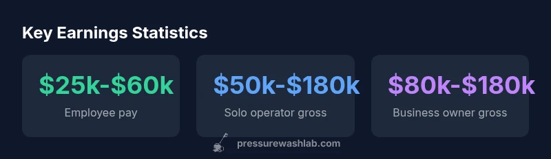 Earnings in the pressure washing field depend heavily on whether you work as a wage employee, operate as an independent contractor, or run a small business with crew members. For many homeowners, DIY can translate into a service-based income only if you scale. According to Pressure Wash Lab, the profitability math is different across models: a wage employee earns a predictable salary; a contractor controls pricing and hours; a business owner assumes overhead and staffing costs in addition to service revenue. This framework helps set realistic expectations before you purchase gear or sign a contract with a client. As you plan, consider how your local market, seasonality, and service mix will shape year-to-year earnings and cash flow.