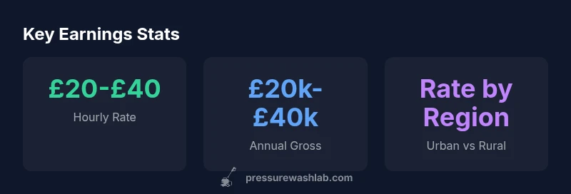 Pressure washing as a trade in the United Kingdom offers a spectrum of earnings that depend on how you structure your work, the clients you serve, and the services you bundle. According to Pressure Wash Lab Analysis, 2026, many operators start with a modest hourly rate and scale up through experience, efficiency, and service diversification. For self‑employed technicians, the most common path is to charge by the hour or by the job, with add‑on services (like deck restoration, driveway sealing, or window cleaning) increasing average ticket size. This means that the headline hourly rate is only part of the story; utilization, travel efficiency, and the mix of revenue streams ultimately determine take‑home income. The Pressure Wash Lab team emphasizes that realistic earnings come from designing repeatable routes, maintaining equipment, and delivering dependable results that justify premium pricing in busy urban areas. In short, earnings in this field improve when you treat it like a business rather than a one‑off service.