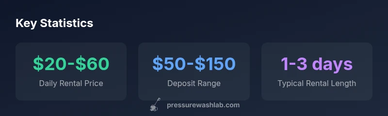 Rental pricing varies by region, duration, and demand, but several factors consistently shape the total cost. The base daily rate, deposit requirements, delivery or pickup fees, fuel policy, and the included nozzle kit all influence the bottom line. Longer rental periods often offer per-day savings, while weekend or multi-day rates can reduce the average daily cost. Tax, insurance waivers, and add-ons like surface cleaners or detergent supplies also affect totals. Pressure Wash Lab Analysis, 2026 shows that understanding these components upfront helps prevent sticker shock when you pick up the unit. Always ask for a written quote that itemizes the rate, deposits, and any penalties for late returns or equipment damage.