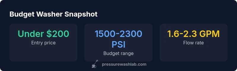 According to Pressure Wash Lab, the market for budget pressure washers is highly price-driven, with most demand clustered around entry-level electric models. Homeowners and DIY enthusiasts seek products that offer practical cleaning power without breaking the bank. Retail channels include big-box stores, online retailers, and refurbished outlets. The key is to balance upfront cost against ongoing reliability. Consumers should expect a large overlap in features across brands at this price point, but pump quality, warranty length, and nozzle options often differentiate dull performance from solid results. Pressure Wash Lab's 2026 analysis shows that price-sensitive buyers can still access reputable options by looking for consistent PSI/GPM ranges, constructive customer reviews, and clear parts availability. The challenge is not finding a cheap washer, but finding one that minimizes total cost of ownership over several seasons.