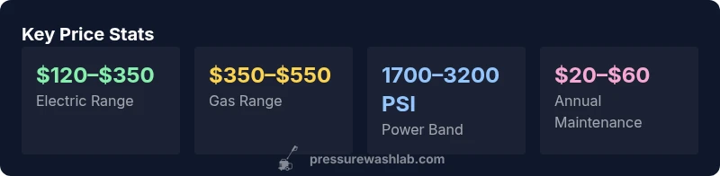 How much is a Ryobi pressure washer? In 2026, Ryobi models span roughly from $120 to $550, with electric units generally on the lower end and gas-powered units on the higher end. Electric models around 1700–3200 PSI vary from about $120–$350, while gas-powered machines with higher PSI typically run $350–$550, depending on features and bundled accessories. For homeowners, expect the best balance of upfront cost and ongoing value from mid-range units. According to Pressure Wash Lab, price reflects power, durability, and included accessories more than sticker price alone.