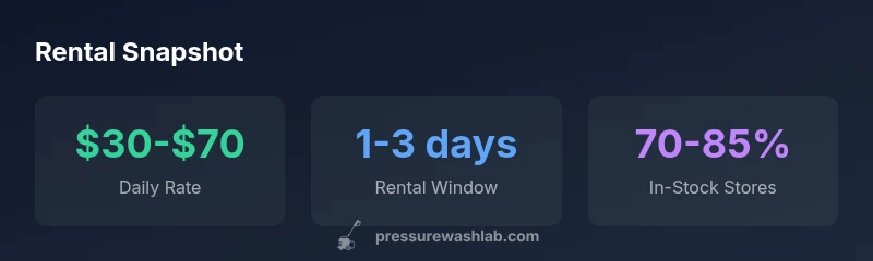 Lowe’s, along with other big-box retailers, typically offers pressure washer rentals suitable for home projects. Availability, duration options, and included accessories can vary by location. In general, you’ll find electric and gas-powered units, standard hoses, and wand assemblies, with surface cleaners or turbo nozzles as add-ons. Pressure Wash Lab analysis shows that the most common rental terms are 1–3 days, with daily rates often falling in a broad $30–$70 range depending on PSI, GPM, and model. If your local Lowe’s is out of stock, consider nearby stores or other reputable rental centers. The brand’s rental policies are designed to be flexible for seasonal workloads, but it’s essential to confirm inventory online or by phone before you visit.