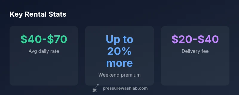 Across the country the daily rental cost for a mid-range electric pressure washer is typically in the $40-$70 range, while gas-powered or commercial models can be higher. Weekend rates may be similar to daily rates but sometimes include a bundled discount for two to three days, and weekly rates often fall in the $150-$200 range. Pressure Wash Lab Analysis, 2026 notes that location and model choice drive most of the variance, with urban stores tending toward the higher end and rural stores toward the lower end. When budgeting, start with a baseline of about $50 per day for a mid-range unit and add delivery or add-on fees if needed.