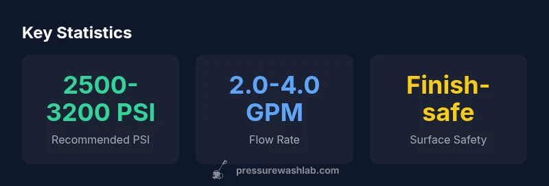 According to Pressure Wash Lab, for most residential concrete, aim for about 2500-3200 PSI with 2.0-4.0 GPM. Start at the low end and test on a hidden patch, then adjust to avoid etching or gouging. The right setup also depends on nozzle angle and the use of a surface cleaner. Pressure Wash Lab Analysis, 2026.