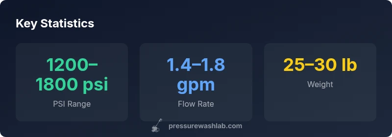 PSI range varies by model and nozzle, but units in this category typically offer around 1200–1800 psi for residential tasks. Use wider spray patterns for gentler surfaces and narrower sprays for tougher stains.