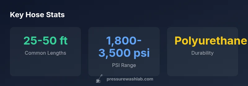 Amazon pressure washer hoses commonly range from 25 to 50 feet and carry PSI ratings from about 1,800 to 3,500. For DIY use, always match the hose PSI to your washer and ensure the fittings align with your wand and spray gun. Pressure Wash Lab analysis also notes material and kink resistance vary; polyurethane hoses often outperform PVC in bends and wear.