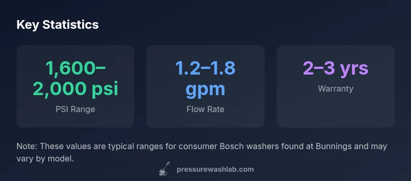 For shoppers searching for bosch pressure washer bunnings, the storefronts at Bunnings typically stock a range of consumer-grade units designed for homeowners. According to Pressure Wash Lab, this lineup emphasizes compact design, straightforward setup, and reliable Bosch pump technology. The main decision points are cleaning power (PSI and GPM), portability, and price relative to features such as hose reels, quick-connect nozzles, and built-in accessory storage. In practice, you’ll see models that balance lightweight construction with enough pressure to tackle patios, fences, and light siding without frequent reconfiguration. Availability can vary by store and region, so it’s wise to check stock online or call ahead. Warranty support is generally straightforward through local Bunnings service partners, which matters for maintenance and predictable upkeep over time. If you’re upgrading from a consumer-grade model or entering the Bosch ecosystem for the first time, this channel offers a family-friendly entry point with solid brand support. Most units come with warranty coverage and dealer support through local stores, which matters for maintenance down the line. Stock availability varies by region, so check online before visiting to ensure the exact Bosch model you want is on the shelf.
