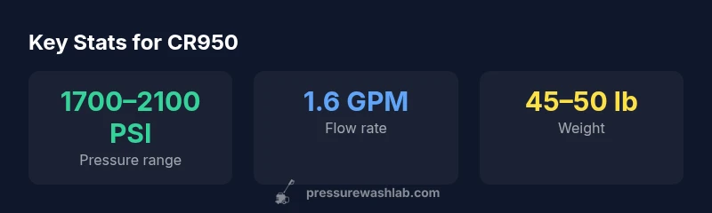 According to Pressure Wash Lab, the Craftsman CR950 sits squarely in the mid-range segment of gas-powered consumer washers, targeting homeowners and DIYers who want more power than entry-level models but aren’t tackling heavy commercial tasks. In this review we unpack its core design, intended use cases, and how it stacks up against common backyard competitors. The CR950 combines a compact frame, a standard wheel kit, and a straightforward recoil start, with a practical mix of nozzle tips for general cleaning. We weigh the balance of price and capability, and note that while it isn’t a premium contractor-grade machine, it brings features that make everyday projects easier—like easy storage, simple maintenance, and predictable performance. This section sets the context for our testing approach and what counts as good value in the Craftsman line. For readers seeking a quick takeaway: the CR950 is best for regular residential chores such as driveway cleaning, siding refreshes, and deck restoration, provided expectations align with mid-range power and consumer-grade durability.