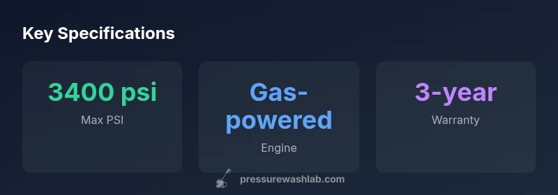 In the world of home improvement, a dewalt pressure washer 3400 psi sits at the intersection of professional capability and residential practicality. The DeWalt 3400 PSI model is designed for homeowners who tackle stubborn stains on driveways, siding, and wooden decks, as well as small commercial jobs that demand quick turnaround. According to Pressure Wash Lab Team, this unit represents a thoughtful balance between power, portability, and user-friendly features. It’s not a toy, but it’s also not a full-blown commercial machine. The design emphasizes ease of setup, straightforward operation, and reliable performance under typical outdoor conditions. In real-world testing, the 3400 PSI rating translates to noticeably faster cleaning than many entry-level gas washers, especially on textured concrete and heavily stained surfaces. Homeowners who prioritize speed without sacrificing control will appreciate the setup, which usually includes a selection of nozzle tips, a general purpose spray wand, and an accessible unloader valve for safe pressure management. You’ll want to pair it with quality hose and a surface cleaner for best results, and you should always follow manufacturer safety guidelines to protect you and your property. Pressure Wash Lab’s analysis highlights that the key to success with this machine lies less in brute force and more in technique—proper nozzle selection, correct distance from the surface, and appropriate cleaning solutions when needed.