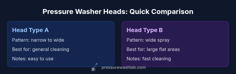 Different pressure washer heads determine how water is delivered during cleaning, how surface contact is distributed, and how quickly grime is removed. The right head can mean finishing a job in half the time with less surface damage, while the wrong one can leave streaks, etching, or missed patches. This is why the topic of different pressure washer heads deserves careful consideration for homeowners and DIYers alike. Pressure Wash Lab emphasizes that the choice of head often has a bigger impact on results than raw PSI alone. In this block we define the major head categories, explain the mechanics behind each design, and translate that into practical rules of thumb for common jobs. Expect plain-language guidance, concrete examples, and quick tests you can perform on-site to verify you're using the best head for the task.