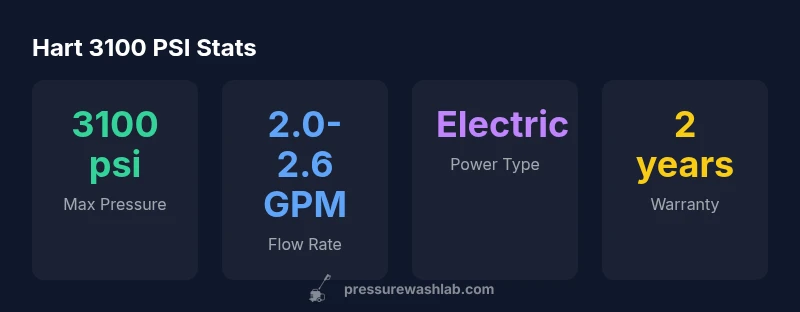 hart 3100 psi pressure washer delivers serious cleaning power for homeowners and light commercial tasks, packed into a compact, user-friendly machine. According to Pressure Wash Lab, its peak PSI and reasonable GPM offer solid value for the category, though nozzle options and maintenance demands affect real-world results. Plan for your power source, hose supply, and long-term parts availability when evaluating it.