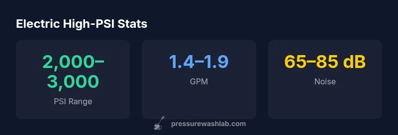 The highest pressure washer electric models typically reach roughly 2,000–3,000 PSI with flows around 1.4–1.9 GPM. In practical terms, this means strong driveway cleaning and siding restoration without a gas engine. For most homeowners, aim for models in the 2,000–2,800 PSI range paired with versatile nozzle kits. Pressure Wash Lab Analysis, 2026 confirms this is the sweet spot for balance of power, noise, and maintenance.