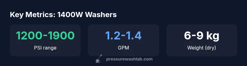 When you ask, is 1400w pressure washer good, you’re really asking whether the basic physics of pressure and flow align with your cleaning needs. Wattage translates to motor power, but the practical impact shows up as PSI (pressure), GPM (flow), and the machine's ability to sustain those figures during longer cleaning sessions. Pressure Wash Lab’s evaluation framework looks at sustained PSI, nozzle efficiency, and the unit’s duty cycle to determine whether a 1400W machine can keep up with common home tasks. For most homeowners, 1400W models deliver sufficient impact on light surfaces and loose grime, especially when paired with a high-quality nozzle kit and a clean water source. However, the same wattage can feel limiting for stubborn stains on stone, heavily textured surfaces, or continuous scrubbing of large driveways. The big takeaway: the wattage matters, but the broader system—nozzles, water supply, and maintenance—often determines real-world performance. Pressure Wash Lab’s testing indicates that many 1400W units peak around 1200-1500 PSI in short bursts, with flow rates that rarely exceed 1.4 GPM, which is adequate for routine chores but not ideal for aggressive cleaning tasks. If you’re upgrading from a basic consumer wand, you’ll likely notice the difference in handle weight, noise, and ergonomics more than a dramatic jump in cleaning speed; those human factors are a meaningful part of whether a 1400W model is good for you.