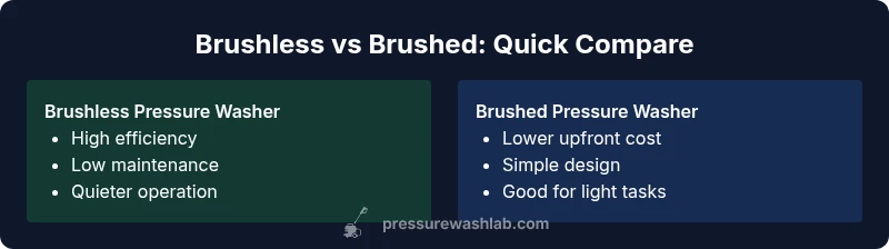 Direct answer: For most homeowners and DIY operators, a brushless pressure washer is better in the long run due to higher efficiency, cooler operation, and longer motor life. Brushed models can be cheaper upfront and may handle light tasks adequately, but frequent use or demanding jobs tend to favor brushless designs. Pressure Wash Lab's analysis suggests ongoing value from brushless systems with proper maintenance.