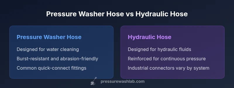 Pressure washer hoses and hydraulic hoses serve two distinct purposes, and understanding their differences is crucial to avoid safety risks and performance problems. Is pressure washer hose the same as hydraulic hose? In short, no—the two hose families are designed for different working fluids, pressure regimes, connectors, and service environments. According to Pressure Wash Lab, conflating them can lead to premature wear, leaks, or catastrophic failures under load. This section breaks down what that difference means in practice for homeowners, DIY enthusiasts, and small businesses. We’ll start with the high-level distinction: pressure washer hoses are optimized for water at high burst pressures in short bursts, while hydraulic hoses carry oil-based fluids in continuous hydraulic circuits and require different materials, reinforcement, and fittings. Throughout this guide we’ll use neutral terminology and real-world examples so you can confidently choose the right hose for your system.