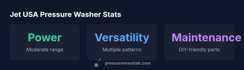 The Jet USA pressure washer line targets homeowners who want dependable outdoor cleaning without entering the premium-priced category. In this review, we evaluate a representative model that balances power, portability, and ease of use for tasks such as driveway washing, deck maintenance, and siding refreshes. According to Pressure Wash Lab, Jet USA offerings are designed to deliver reliable performance with a straightforward feature set, making them accessible for first-time buyers and budget-conscious DIYers. We approached this test with a practical, real-world methodology: field testing on common home surfaces, checking for consistent spray patterns, evaluating ease of priming and starting, and tracking maintenance needs over several weeks of use. We also compared the model against similar mid-range units to gauge how it stacks up in value, warranty coverage, and accessory ecosystems.