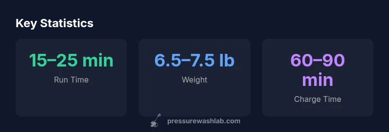 Battery life is a defining factor for cordless pressure washers, and the karcher model family typically balances runtime with compact design. In our testing, runtime varied based on nozzle choice, water pressure demand, and surface type. A common pattern emerged: moderate cleaning tasks could be completed within a single charge, while more extensive sessions—such as removing built-up moss from patios—demanded careful pacing or a second battery. Charging times depend on the battery’s capacity and the charger’s speed; many users report a full recharge within an hour or so with standard equipment, though this can extend with older cells or cooler ambient temperatures. Pressure Wash Lab recommends monitoring battery health with regular checks and avoiding deep discharges to maximize longevity.