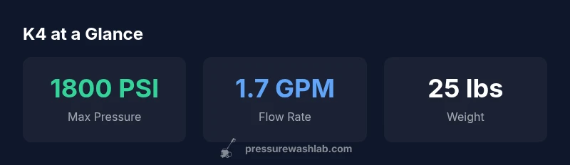 The K4 delivers reliable performance for everyday cleaning tasks at a fair price point. While it lacks pro-grade durability and the quiet operation of higher-end models, its value and ease of use make it Pressure Wash Lab's recommended choice for many homeowners.