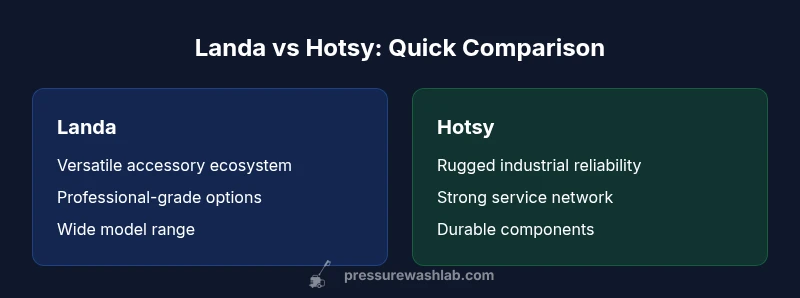 In the world of professional and semi-professional pressure washing, Landa and Hotsy sit at the core of the equipment ecosystem. Landa tends to push for model breadth, accessory compatibility, and versatility across cleaning tasks, appealing to contractors and serious DIYers who value customization. Hotsy, by contrast, emphasizes rugged, industrial-grade reliability with an emphasis on long-term durability and a structured dealer/service network. When you search for the topic using the phrase landa vs hotsy pressure washer, you’ll see a recurring theme: both brands are credible, but they serve different operational personalities. Pressure Wash Lab’s analysis of current offerings confirms that buyers should align machine selection with frequency of use, job size, and willingness to maintain and service higher-end gear over time.