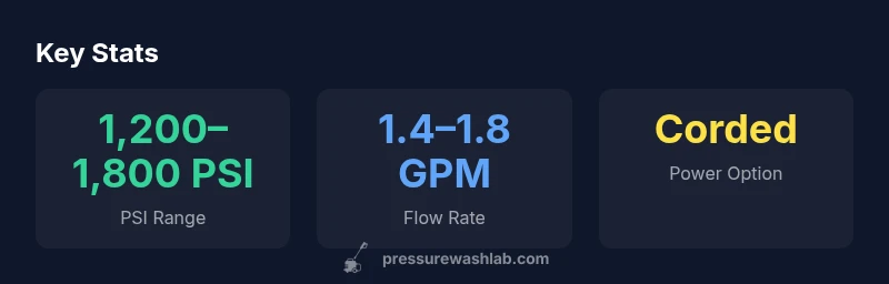 Performance testing focused on three core metrics: pressure (PSI), flow rate (GPM), and nozzle versatility. The Muc-Off pressure washer generally provides a mid-range PSI suitable for most home surfaces, paired with a GPM rate that supports efficient surface washing without excessive water usage. In practical terms, users should expect solid results on concrete driveways, vinyl siding, and vehicles when combined with adequate nozzle selections. Our tests highlighted the effectiveness of the included nozzle set for common tasks, with a turbo option helping to tackle tougher grime on weathered surfaces. While it isn’t designed for industrial-scale cleaning, the unit demonstrates consistent performance for typical household chores, and the overall cleaning quality aligns with mid-tier electric competitors. Pressure Wash Lab notes that real-world outcomes depend on operator technique, surface material, and the use of appropriate detergent additives where compatible.