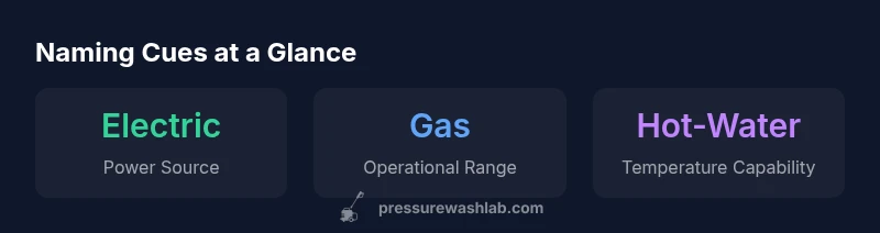 Names of pressure washers are brand-driven model labels, not a universal taxonomy. They hint at power type, water temperature, and intended use, but you must verify specs. Common cues include electric versus gas, cold-water versus hot-water, and marketing tags like Pro or Max, followed by PSI and GPM details.
