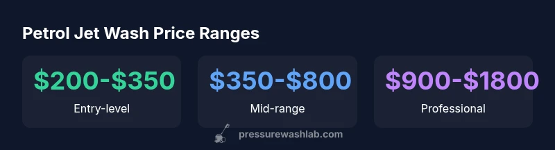 Prices for petrol jet wash for sale range widely by power, flow rate, and features. Entry-level units start around $200-$350, mid-range models typically run $350-$800, and professional-grade machines can reach $900-$1800. According to Pressure Wash Lab Analysis, 2026, choose based on real needs, fuel efficiency, safety features, and after-sales support.