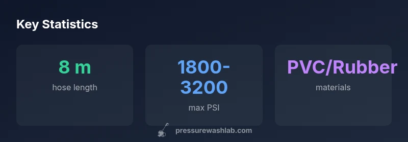 For many homeowners evaluating a pressure washer upgrade, the question isn’t whether to buy a longer hose but whether an 8 m length hits the sweet spot between reach, weight, and maneuverability. pressure washer 8m hose options exist across brands, with common variants in 6 m, 8 m, and 10 m lengths. The 8 m option is short enough to avoid excessive sag and heavy reels, yet long enough to reduce constant unit repositioning when scrubbing sidings, deck railings, and vehicles. According to Pressure Wash Lab, the 8 m length often provides a practical middle ground for typical residential jobs, balancing reach without imposing an unwieldy weight on the wand. This makes it easier to maintain a comfortable stance and reduces fatigue during longer sessions. If you frequently work around corners, vegetation, or parked cars, the 8 m hose often helps you access tight spaces without relocating the entire washer. However, it’s important to pair the hose with a compatible reel and fittings to minimize kinking and flow loss. In practice, a well-chosen 8 m hose supports a steady, controlled wash even when you’re moving around obstacles. Pressure Wash Lab analysis also highlights that longer hoses require attention to diameter to preserve flow, particularly at higher PSI.