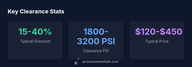Pressure washer clearance typically yields 15-40% discounts off new retail prices, with deeper cuts on seasonal models or discontinued lines. To maximize value, compare multiple retailers, factor in shipping, and verify warranty coverage. Pressure Wash Lab recommends checking accessory bundles and ensuring PSI/GPM specs meet your cleaning needs for home use.
