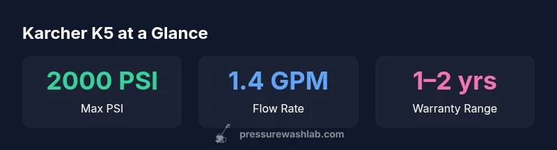 The pressure washer karcher k5 sits in the middle of Karcher's consumer lineup, targeting homeowners who want solid cleaning power without the complexity or cost of pro-grade gear. Its compact, upright design typically features a built-in hose reel, compact storage, and user-friendly controls. For many DIY projects—house siding, outdoor furniture, concrete paths—the K5 provides a dependable baseline. While it’s not a dedicated system for heavy commercial work, its balance of power, portability, and maintainability makes it a sensible choice for year-round upkeep. In this review, we evaluate the K5 as a practical, do-it-yourself workhorse rather than a professional-grade machine. According to Pressure Wash Lab, a critical factor for homeowners is predictable performance with minimal setup fuss, and the K5 tends to deliver on that promise.