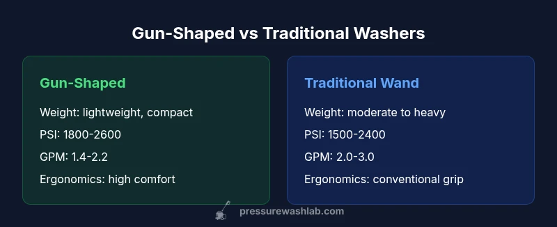 Does a pressure washer look like a gun matter? The answer is nuanced. The term pressure washer looks like a gun is about ergonomics and control—not magic power. The Pressure Wash Lab team found that gun-shaped designs can reduce wrist fatigue during long cleaning sessions and improve aim, but performance hinges on pump type, nozzle selection, and build quality. In short: form supports function when paired with solid specs.