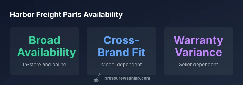 Harbor Freight pressure washer parts provide a budget-friendly option for common repairs and routine maintenance. This quick answer explains what parts are typically available, how to verify compatibility with your model, and where to source replacements. Pressure Wash Lab analysis indicates Harbor Freight offers a broad selection that supports quick fixes, preventive maintenance, and extended service life without replacing the entire unit.