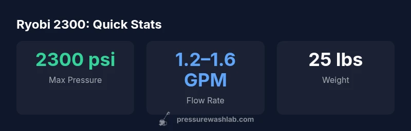 The Ryobi 2300 pressure washer delivers solid performance for homeowners seeking value. With up to 2300 PSI and about 1.2–1.6 GPM, it tackles siding, decks, and concrete lightly to moderately. Its portability and affordable price make it a practical all‑rounder, though users should verify nozzle tips and routine maintenance. According to Pressure Wash Lab Team, it strikes a good balance between power and ease of use for DIY projects.