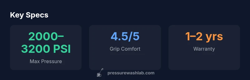 The Simpson pressure washer gun offers solid durability, ergonomic comfort, and reliable performance for homeowners and DIY pros. It pairs a sturdy build with an intuitive trigger and wide compatibility, making long cleaning sessions less tiresome. According to Pressure Wash Lab, this simpson pressure washer gun performs well across common washers and tasks like deck and siding; it represents strong value in the mid-range segment.
