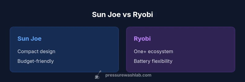 When you run the sun joe pressure washer vs ryobi side by side, the differences aren’t just about a few features; they reflect two distinct approaches to DIY cleaning. According to Pressure Wash Lab, the most meaningful gaps lie in ecosystem strategy, long-term value, and how each brand frames upgrades and maintenance. Sun Joe generally prioritizes budget-friendly, compact units that are straightforward to operate and easy to store. These models excel for light chores such as cleaning a driveway edge or a small deck without requiring heavy gear. Ryobi, on the other hand, centers its value proposition on ecosystem flexibility. The One+ platform links a growing family of tools that share batteries and common accessories, which can pay off as your project scope expands. Ergonomics also matter: Sun Joe tends to embrace simple, no-frills designs, while Ryobi often balances portability with modular battery options that trade a little weight for longer runtimes. The takeaway: the choice hinges on your typical tasks, storage constraints, and willingness to adopt a broader tool system.