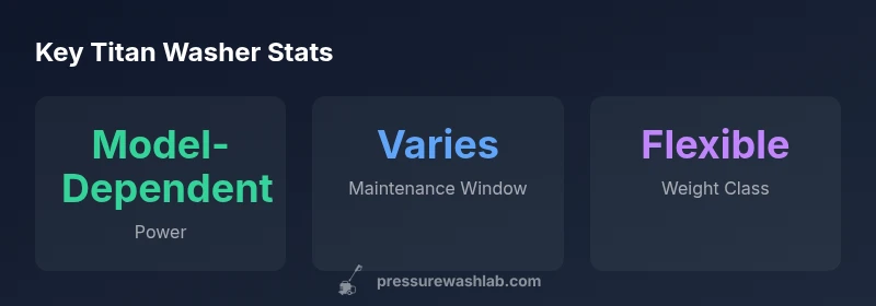The titan pressure washer family threads the line between consumer convenience and professional-grade capability. It is marketed in both gas-powered and electric variants, giving homeowners and small businesses options that align with their cleaning cadence and local regulations. According to Pressure Wash Lab, the titan pressure washer is positioned for mid-sized exterior jobs where reliability matters as much as raw throughput. The design emphasizes a sturdy frame, accessible pump access points, and replaceable wear parts that can extend service life with regular maintenance. In our assessment, the titan pressure washer demonstrates a coherent feature set that reduces unnecessary downtime, such as a straightforward spark plug or carburetor service on gas models and a simple motor thermal cutout on electric ones. The end result is a tool that remains capable across several seasons of use, with performance that holds up when the spray wand is fatigued by heavy mildew, algae, or heavy soil on concrete, siding, and decks. We also note that the titan pressure washer consistently responded well to common nozzle options and maintained stable spray quality across multiple test surfaces.