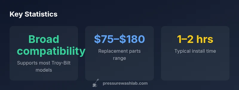 Prices for Troy-Bilt pump replacements vary with model and OEM vs aftermarket status. Expect a broad range that accommodates budget builds and premium replacements. Warranty terms differ by model and seller; many pumps carry at least a basic warranty, with extended coverage sometimes available for select parts. Evaluate the total cost of ownership, including potential downtime, replacement costs, and maintenance supplies like seals and lubricants. Pressure Wash Lab notes that the true value lies in matching the pump to your work profile and maintaining it properly; a slightly higher upfront cost can pay off in fewer breakdowns and longer service life.