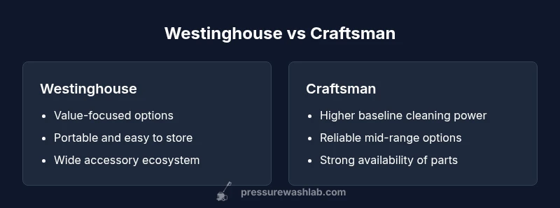 In a westinghouse pressure washer vs craftsman pressure washer comparison, Westinghouse models generally offer the best value and portability for routine home cleaning tasks, making them a strong first choice for many DIY projects. Craftsman models, on the other hand, often deliver higher cleaning power in mid-range variants, which can be advantageous for tougher jobs. Your pick should hinge on intended tasks, budget, and willingness to upgrade accessories.