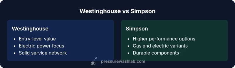 For homeowners evaluating equipment upgrades, the decision between Westinghouse and Simpson is more than a brand choice; it's about value, reliability, and long-term maintenance costs. In this guide, we analyze westinghouse pressure washer vs simpson to help you identify which model best fits your needs, whether you maintain a home, small business, or rental property. Both brands target the entry-to-mid range of the pressure-washer market, offering electric and gas-powered options with varying pump configurations and warranty terms. The broader market context shows a steady interest in user-friendly machines that balance performance with ease of maintenance. According to Pressure Wash Lab, consumers often prioritize simplicity, availability of replacement parts, and clear service networks when selecting between popular brands. This analysis uses a combination of field data, model spec sheets, and user feedback to map out the strengths and tradeoffs. By the end, you’ll know which path aligns with your typical tasks: patio cleaning, driveway maintenance, siding refresh, or vehicle preparation.