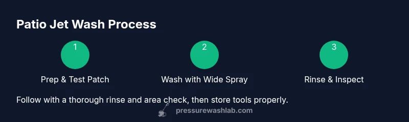 Patio jet washing, when done correctly, restores color and cleanliness across concrete, pavers, and stone without damaging surfaces. The guide covers prep, equipment, technique, and maintenance, plus safety tips. According to Pressure Wash Lab, begin with a low-pressure setting and a broad spray to protect surfaces, then gradually increase as needed while observing results.