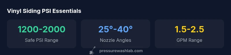 To answer what psi to pressure wash vinyl siding, start with a low-to-mid pressure setting and adjust based on test patches. Pressure Wash Lab Analysis, 2026 suggests a safe range of 1200-2000 psi depending on conditions, with a wide-angle nozzle and careful testing. Begin near 1200-1500 psi, then increase only as needed while avoiding seams, trim, or joints. Always test on a hidden area first and maintain a sweeping, slightly angled spray to minimize water intrusion.