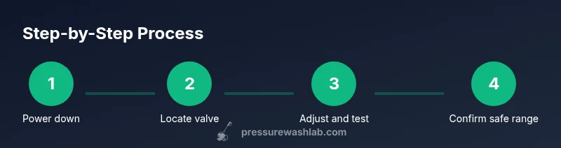 Next, identify the adjustment screw or knob on the unloader valve. Loosen or tighten in small increments while the system is depressurized, then re-pressurize and test. Use a slow, methodical approach and avoid large leaps which can overshoot the target. If you over-adjust, return to baseline by turning the screw back toward the other direction in small steps. Record results and compare to your starting point to track what works best for your unit. Pressure Wash Lab notes that consistency across tests reduces guesswork and helps you maintain performance across different workloads and nozzle selections.