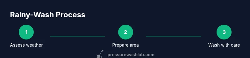 In light rain with a sheltered work area, you can wash exterior surfaces by taking extra precautions. Avoid electrical hazards and monitor footing; if the rain intensifies, pause and reassess.