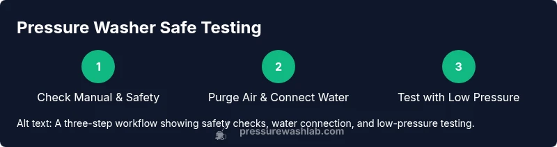 Can you test a pressure washer without water? Not safely. The pump can be damaged if run dry. For a safe, informative check, follow these steps: 1) verify electrical and safety interlocks, 2) inspect hoses and fittings for wear, 3) perform a controlled test with water connected and a low-pressure nozzle, 4) monitor for leaks and unusual noises.