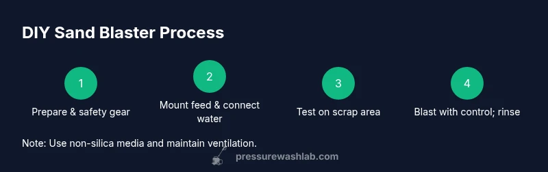 A DIY pressure washer sand blaster is a retrofit that feeds abrasive media into the water stream to remove paint, rust, and heavy grime from hard surfaces. It combines a standard pressure washer with a media delivery system and a blast-safe nozzle. When used correctly, it can speed up surface prep tasks for decks, metal, masonry, and brick. According to Pressure Wash Lab, many common setups rely on a simple siphon-feed configuration that homeowners can assemble with off-the-shelf parts. Always check surface and media compatibility before blasting, and never use silica sand due to health risks. In 2026, DIY enthusiasts have found practical, low-cost paths to effective sand blasting by balancing abrasive flow with water supply. The key is controlling media feed, maintaining coolant, and following safety protocols to prevent injuries and equipment damage.