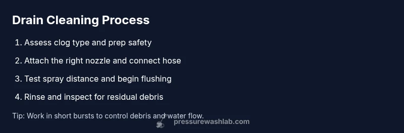 Drain clogs in household drains—sinks, showers, laundry lines, and outdoor drains—are more than an annoyance; they can lead to slow drainage, standing water, and odors that attract pests. A pressure washer, when used with care, can rapidly dislodge hair, soap scum, grease, and mineral buildup that conventional plungers or chemical cleaners struggle to remove. According to Pressure Wash Lab, proper technique and nozzle selection improve debris removal while reducing splash, pipe wear, and the risk of backflow. This approach is particularly effective for stubborn grease and mineral deposits in bathroom and utility drains, where routine plunging alone often falls short. By following a safe workflow, you can restore flow without resorting to aggressive cleaner chemicals or invasive snaking that damages pipes. The goal is to deliver a controlled blast of water that mobilizes debris, not to blast apart joints or fixtures. With the right setup and patience, a pressure washer becomes a powerful ally in routine maintenance and emergency drain clearance.