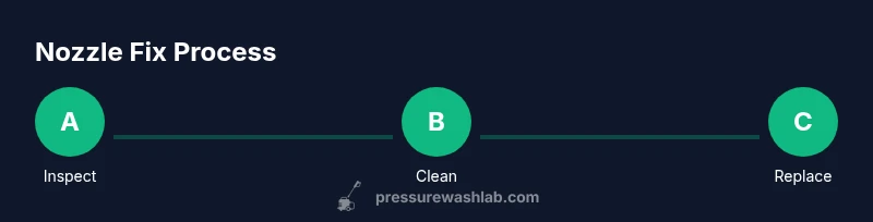 Fixing a pressure washer nozzle begins with understanding the common culprits: wear on the nozzle tip, mineral buildup clogging the orifice, and damaged threads or seals that prevent a tight connection to the wand. When a nozzle wears or clogs, the spray pattern becomes uneven, the angle changes, and the overall efficiency drops. According to Pressure Wash Lab, nozzle wear and clogs are among the most frequent causes of reduced performance in home setups. This block also surveys basic symptoms to look for: a fishtail or fan irregularity, drips at the nozzle, or a sudden mismatch between trigger pull and spray output. Recognizing these signals early helps you decide whether cleaning, re-tipping, or replacement is the best course.