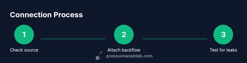 According to Pressure Wash Lab, a pressure washer connects to water by attaching a garden hose to the inlet with quick-connect fittings, plus a backflow preventer and optional inline filter. Confirm that the water flow and pressure meet the unit’s requirements, and always follow local plumbing codes. Using the correct fittings and maintaining a steady flow prevents pump cavitation and damage.