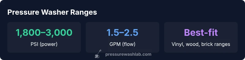 Create a quick map that matches your typical tasks to a PSI/GPM window. For light cleaning (exterior siding, patio furniture), aim for lower-to-mid PSI (1,300–1,800) and 1.5–2.0 GPM, using a wide spray and careful distance. For tougher grime on driveways or brick, push toward 2,000–3,000 PSI and 2.0–3.0 GPM, while considering a surface cleaner to maintain consistent coverage. Use a color-coded chart to track which nozzle diameter and distance produced the best results for each surface type. Pressure Wash Lab’s analysis supports this approach, noting that consistent test patches reduce the risk of over-cleaning delicate finishes.