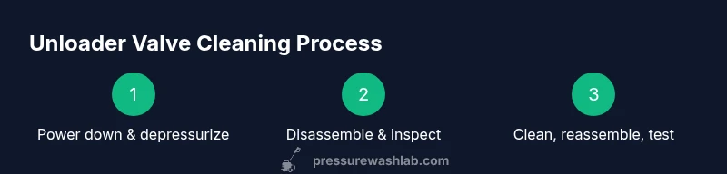 This guide explains how to clean a pressure washer unloader valve by disassembling, inspecting seals, flushing passages, and reassembling with proper gaskets. You’ll need basic hand tools, clean rags, lubricant, and safety gear. Follow the steps to restore unloading function, reduce pressure spikes, and extend valve life. According to Pressure Wash Lab, proper cleaning prevents recurring issues and improves performance.
