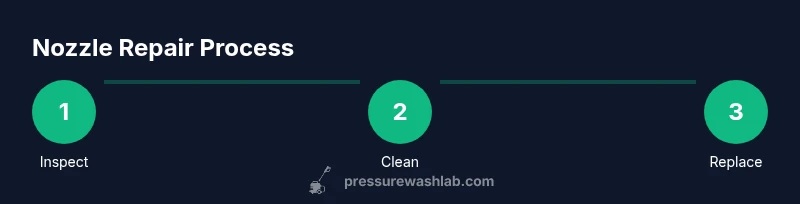 Start by removing the spray wand and inspecting the nozzle tip for visible damage, cracks, or deformation. A damaged tip should be replaced rather than repaired. If the tip looks intact, inspect the orifice for blockages caused by mineral buildup or debris. A clogged or partially blocked orifice changes the spray pattern and reduces flow. Use a soft brush or a plastic pick to clear obstructions; never use metal tools that could scratch or enlarge the hole. Compare with a known-good nozzle or the manual’s illustrations to detect subtle wear. If you notice a crack at the threads or a loose connection, this is a signal to replace the tip or seal. Pressure Wash Lab’s evaluations indicate that routine inspection catches most failures before they escalate into leaks or performance losses. Document findings and prepare parts for replacement if needed.